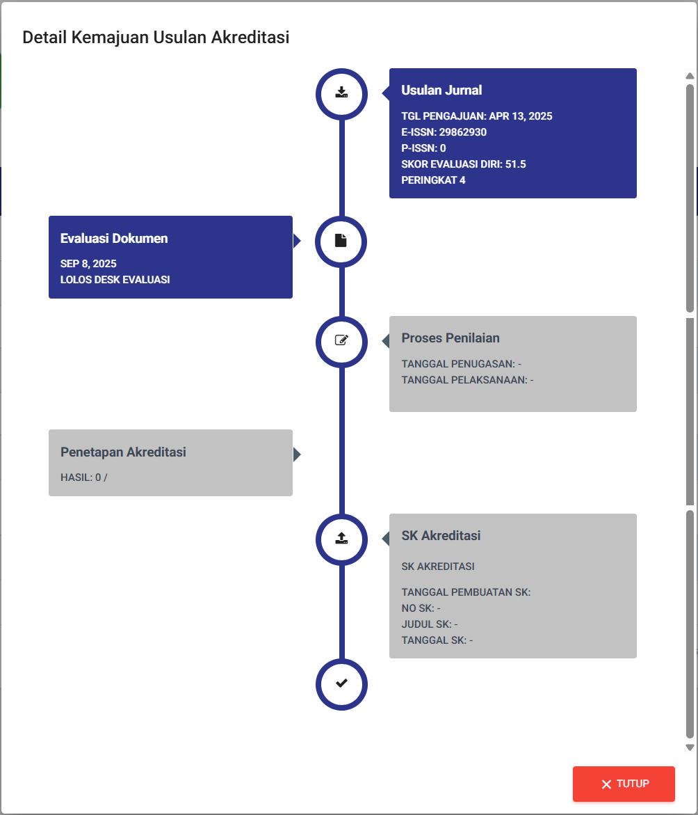 2. Status Akreditasi Jurnal Nasional: Proses penilaian di Arjuna, lolos Desk Evaluasi.